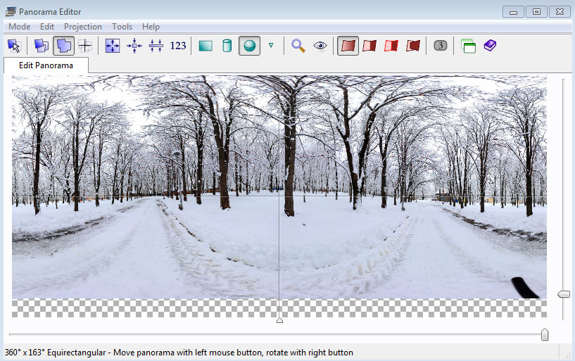 Все что осталось - нажать кнопку Create Panorama и дождаться результата: Мы сделали эквидистантную проекцию сферической панорамы. Как видно, на ней присутствуют черные полосы, который заменяют зенит и надир. В следующий раз мы рассмотрим как вставить зенит и надир в панораму и продолжим создание сферической панорамы. Ссылки по теме |