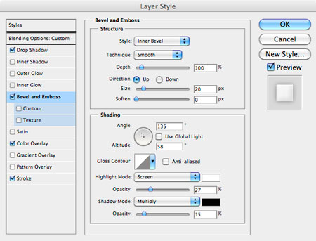 ![]() ![]() ![]() ![]() В конце должно получиться примерно так: ![]() Шаг 5. Ещё разметкаЧтобы гарантировать, что мы будем придерживаться одинакового расстояния от краев контейнера при добавлении туда контента (мы же не будем каждый раз считать пиксели по линейке), добавим ещё четыре линии в контейнер на расстоянии 40 пикселей от краев. ![]() Шаг 6. НавигацияКак вы видели в превью финального итога, мы будем делать навигация как бы вырезкой из основного контейнера. Чтобы осуществить задуманное мы вырежем кусочек из основного контейнера и позволим настройкам стилей слоя сделать свою магию. Для этого создадим поверх слоя выделения необходимой формы. Создаем прямоугольник со скругленными краями радиусом в десять пикселей. Чтобы расположить навигацию правильнее, ориентируйтесь на разметку. Теперь выделяем наш прямоугольник. В списке слоев выделяем основной контейнер и жмемDelete на клавиатуре. Готово. Не забудьте удалить слой с маленьким прямоугольником - он нужен был нам только для создания выделения. ![]() Если бы мы не использовали стили, то дырка была бы неаккуратной и некрасивой. Однако со стилями все выглядит абсолютно безупречно, кроме того есть ещё один плюс - мы в любой момент можем отредактировать что-либо в стилях. Добавим текст. Я использовал стандартный в Windows шрифт Rockwell. ![]() Мы сделаем для него эффект "выгравированного в камне" текста. Для этого добавим теней со следующими настройками. ![]() Шаг 7Как правило, в современных дизайнах принято как-то выделять страницу навигации, на которой пользователь находится. Создадим выделение, как показано на рисунке, поместив слой прямо под слоем с текстом. Залейте выделение каким-нибудь цветом, неважно каким. Назовем слой "active nav". ![]() Применим к слою следующие стили. ![]() Дублируем слой и называем дубликат "active nav flattened". Сводим все слои на дубликате - жмем Flatten All Layer Effects (Выполнить сведения всех эффектов слоя). С помощью выделения удаляем внутреннее подсвечивание и обводку сверху и снизу нашей кнопки. ![]() Теперь нам нужно добавить тени, чтобы создать эффект, будто кнопка "вплетена" в основной контейнер. Мы будем делать это вручную, используя Ellipse Tool Создаем черный эллипс на 20 пикселей шире кнопки примерно в 5 пикселей высотой. Помещаем его над кнопкой и растеризуем. Назовем этот слой "top active shadow". ![]() Теперь нужно немного размазать нашу тень, для этого жмем Filter > Blur > Gaussian Blur (Фильтр > Размытие > Размытие по Гауссу) и применяем размытие с радиусом в два пикселя. Делим эллипс по горизонтали напополам и удаляем верхнюю часть, оставив полукруг. Ставим непрозрачность на 50%. ![]() Ставим непрозрачность слоя "top active shadow" на 75%. Все, на этом верхняя часть готова. Дублируем слой с тенью, отражаем по вертикали и подгоняем под нижнюю часть. Называем дубликат "active nav flattened layer". Должно получиться примерно так: ![]() Шаг 8. ЛогоПеред тем как перейти к работе над логотипом, сделаем еще кое-что. Добавим еще несколько линий в разметку. Делаем, как показано ниже. Для справки - высота выделения 40 пикселей. ![]() Добавим разделительную линию, дабы отделить шапку от блока с основным контентом. Рисуем линию высотой в один пиксель и шириной с ширину основного контейнера. Заливаем линию темно-зеленым цветом (я использовал цвет с фона). Называем слой "separating line". Чтобы добиться эффекта гравировки, дублируем линию, переносим ее на пиксель ниже и заливаем белым. ![]() 