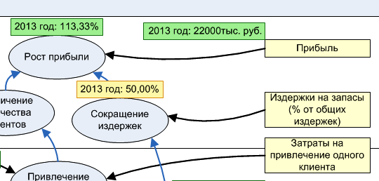 Работа с показателями в Business Studio Portal Портал позволяет вносить плановые или фактические значения показателей в базу данных Business Studio через интернет-браузер. Введенные данные будут сразу доступны на портале для контроля и анализа ответственными лицами. Текущее состояние каждого из ключевых показателей деятельности компании ответственные лица наглядно видят с помощью цветового сигнализатора "Статус". Сигнализатор светится зеленым, когда показатель в пределах заданной нормы, желтым - при выходе в "тревожную" зону, и красным - при попадании в критическую зону значений. Также можно увидеть положение показателя относительно заданных границ. Руководителю демонстрируется тренд показателя - рост или снижение по сравнению с предыдущим периодом. Можно произвести декомпозицию рассчитываемого показателя вплоть до самого нижнего уровня и найти тот показатель, который вызвал отклонение. Также в Портале можно посмотреть динамику изменений показателей. Аналогичным образом контролируется и достижение целей компании. Оценка достижения целей рассчитывается автоматически на основе значений показателей, привязанных к ней. Также можно осуществлять контроль достижения сразу всех целей с помощью стратегической карты. Анализ предложений сотрудников Вовлечение сотрудников в улучшение компании - залог ее успешного развития: ведь именно персонал компании видит все нелогичные и неоптимальные факторы в своей работе. Предоставить людям возможность высказать свои замечания и предложения - это сделать их работу более осмысленной и дать чувство сопричастности к компании. Компания при этом получает ценнейшую информацию для анализа. Business Studio Portal позволяет всем сотрудникам принять участие в обсуждении бизнес-процессов компании. Они могут высказывать свои замечания и предложения на странице конкретного бизнес-процесса. Уведомление о появлении сообщений сразу же направляется владельцу бизнес-процесса и ответственному за процесс бизнес-аналитику. Результаты анализа предложений сотрудников могут быть использованы для внесения изменений в бизнес-архитектуру компании. Business Studio Portal может быть развернут как внутри компании, так и на любой внешней площадке. Все необходимое для этого программное обеспечение содержится в базовой поставке Business Studio. Стиль оформления портала можно менять, также можно разместить в системе логотип своей компании. Способы публикации информации на порталеСистема позволяет настроить несколько режимов обновления отчетов на портале:
