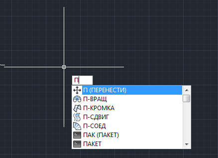 Список команд, который представлен на рисунке выше, это результат работы команды "АВТОЗАВЕРШЕНИЕ". Она позволяет не вводить команды полностью, а ввести только несколько букв и выбрать из списка нужные. Кстати, этот список можно редактировать. Введите в ком. строку "АВТОЗАВЕРШЕНИЕ" и посмотрите на опции. Теперь непосредственно об опциях команд. Некоторые команды при первом обращении к ним, представляют нам выбор опций для дальнейшего действия. Выглядит это следующим образом: