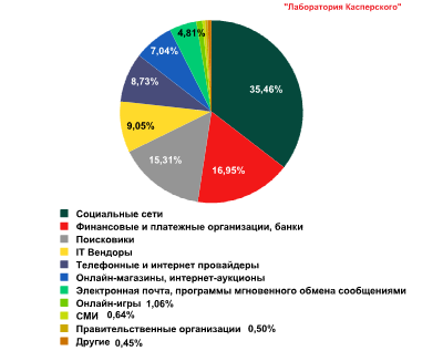 Рейтинг категорий атакованных фишерами организаций основывается на срабатываниях нашего компонента антифишинга на компьютерах пользователей. Антифишинг детектирует все фишинговые ссылки, по которым пытался пройти пользователь, - будь то ссылка в спамовом письме или в интернете. По итогам апреля в пятерке лидеров атакуемых фишерами организаций не произошло существенных изменений. Социальные сети продолжают удерживать лидирующую позицию по количеству фишинговых атак, их показатель увеличился на 1% и составил 35,5%. В первую тройку также вошли финансовые и платежные организации (17%) и поисковые системы (15,3%), они занимают вторую и третью строчку соответственно. Четвертую позицию сохранили за собой ИТ-вендоры (9,1%). Замыкают первую пятерку телефонные и интернет-провайдеры (8,7%). ЗаключениеКак мы и прогнозировали, в апреле количество "праздничного" спама уменьшилось. Нами были зарегистрированы рассылки, посвященные православной Пасхе, спамеры использовали пасхальную тематику не только для рекламы товаров и услуг, но и для обмана пользователей. Мошеннические рассылки с именами известных политических лидеров также довольно часто встречались в спам-потоке. Трагические события редко остаются без внимания спамеров, и апрель2013 года не стал исключением. После двух прогремевших в США взрывов интернет заполонили вредоносные рассылки, эксплуатирующие эти трагические события. В целом в апреле общая доля спама незначительно увеличилась. В апреле большая часть спама по миру распространялась из Китая и США. В спам-потоках Рунета показатели Индии и Италии продолжают снижаться, и в результате эти страны покинули пятерку лидеров. На первом месте по-прежнему Тайвань, следом за ним идут Вьетнам и Украина. Количество фишинговых писем уменьшилось втрое, однако в первой пятерке атакованных фишерами организаций значительных изменений не произошло. Как и в прошлом месяце, социальные сети являются лидером по количеству атак, и следует ожидать, что в мае они сохранят позицию. Возможно, в следующем месяце вырастет показатель онлайн-игр: во время летних каникул традиционно увеличивается активность школьников и студентов, которые активно пользуются различными социальными и развлекательными онлайн-сервисами. |