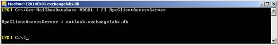 Теперь outlook.domain.com у нас должен быть виден как FQDN. Рисунок 9: Атрибут RpcClientAccessServer установлен в качестве FQDN массива CAS