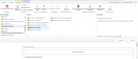 Рисунок 25: Добавление новой веб-части для страницы