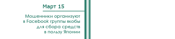 По данным SANS и Google, вскоре после бедствия в Японии была проведена масштабная кампания по "черной" поисковой оптимизации, в рамках которой для распространения фальшивого антивируса было задействовано более 1.7 миллиона страниц. Эта кампания продемонстрировала, насколько активны киберпреступники и как быстро они способны реагировать на горячие новости. 14 марта - SMS-рассылка с ложным сообщением об угрозе радиации вызывает панику на ФилиппинахСогласно сообщениям Spiegel и BBC , на Филиппинах рассылались SMS-сообщения, содержащие лживую информацию. В тексте сообщения, якобы отправленного британским новостным каналом, утверждалось, что радиоактивное облако накроет Манилу в понедельник 14 марта около 16.00. Похоже, целью этой фальшивки было просто вызвать панику среди населения, поскольку нет оснований считать, что злоумышленникам удалось извлечь из своих действий материальную выгоду. 15 марта - Мошенники организуют в Facebook группы якобы для сбора средств в пользу ЯпонииВсего за несколько дней на Facebook появились сотни групп и страниц с призывами о пожертвованиях. Одни обещали, что определенная сумма денег будет перечисляться в пользу пострадавших каждый раз, когда пользователь нажмет на кнопку "Мне нравится", другие предлагали перевести деньги через систему онлайн-платежей. Определить реальные намерения создателей многих подобных групп было очень сложно. 15 марта - IT-экперт Майкл Хорн (Michael Horn), также известный как Nibbler, запускает проект geigerCrowdХакеры помогают Японии: IT-эксперт Майкл Хорн, также известный как Nibbler, запустил проект geigerCrowd , в котором использовал краудсорсинг для разработки программного обеспечения, а также обработки данных об уровне радиации в разных районах страны и представления этой информации в графическом виде. 16 марта - Рассылаются спам-сообщения со ссылками на вредоносный сайтВ одной из первых волн спама, эксплуатирующего ситуацию в Японии, были использованы несколько подлинных заголовков новостей BBC. Однако ссылки с них вели на вредоносный веб-сайт, использующий Java-эксплойты для распространения вредоносного ПО. На скриншоте показано сообщение, полученное 19 марта. Наш коллега Николя написал в своем блоге о похожем сообщении, которое было получено 16 марта. 17 марта - Поддельные письма якобы от Twitter обещают просмотр видео со станции Фукусима-1В этом письме, якобы отправленном службой поддержки социальной сети Twitter, обещан просмотр видеоролика, снятого в запретной зоне вокруг станции Фукусима-1. Ссылка перенаправляет пользователей на вредоносный веб-сайт, заражающий их компьютеры различными вариантами Trojan-Downloader.Win32.Codecpack с помощью нескольких эксплойтов, входящих в набор Incognito. Наш коллега Николя написал об этом блогпост. 18 марта - Раскрыто мошенничество с авиабилетамиСогласно Koreatimes.co.kr, жители Южной Кореи стали жертвой мошенников, заплатив за несуществующие авиабилеты. Билеты были распроданы в результате паники среди населения и связанного с ней резкого роста числа людей, желающих покинуть страну. В мошенническом сообщении говорилось, что два билета сданы и продаются. Предложение якобы исходило от сотрудника туристического агентства. Жертв просили прислать копию паспорта и перевести $674. Таким образом, киберпреступники получили и деньги, и личные данные обманутых пользователей. 18 марта - Спам с ложными обращениями о 