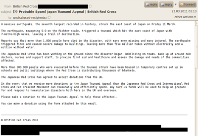 28 марта - Еще одна спам-рассылка от имени Красного КрестаЕще одна волна фальшивых сообщений от имени Красного Креста (на этот раз якобы отправленных из филиала в Японии) с просьбами о пожертвованиях.
